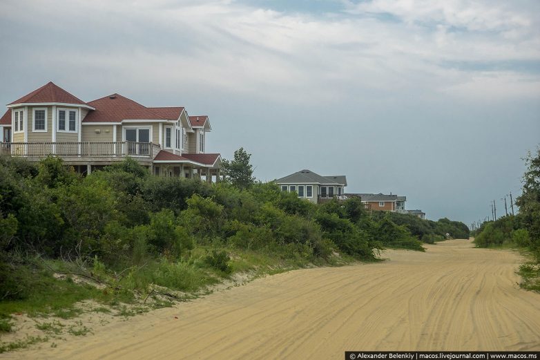 В Штатах такое почти не встретишь, даже грунтовки здесь редкость: они бывают частные и ведут к далеким фермам или вообще служат какими-нибудь задними дорогами на ранчо. Но есть место, где асфальта нет совсем, а по улицам можно ездить только на спущенных колесах, чтобы не застрять в песке.