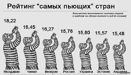Наверное, на ум сразу приходит Россия или Ирландия. Однако, на самом деле, этот список возглавляет Молдова.