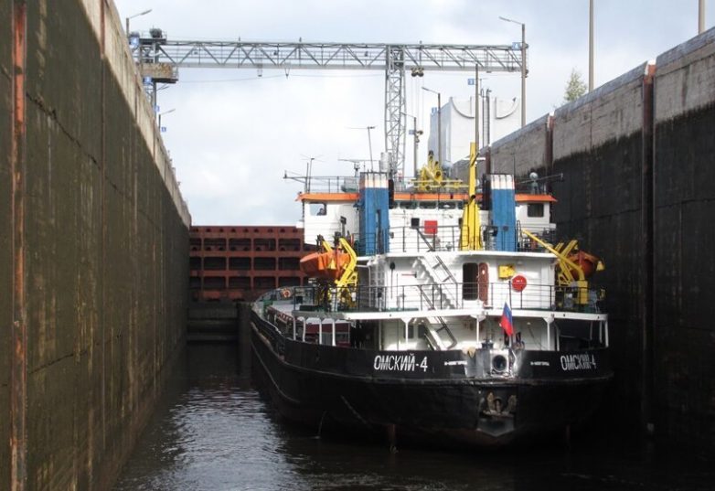 В составе Шекснинского гидроузла два параллельных судоходных шлюза — старый, открытый в 1964 году одновременно с открытием Волго-Балтийского водного пути, и более новый, построенный в 1980-1994 годах в связи со значительным ростом грузооборота по Волго-Балту. Мы совершили шлюзование в новой камере шлюза.