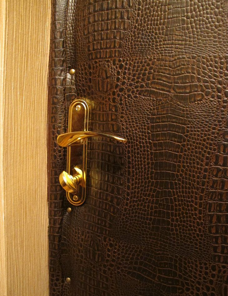 Толстая бронированная входная дверь, обитая дерматином. И обязательно не меньше двух замков. В России это нормально, и так делают для защиты, но не совсем понятно, от чего.