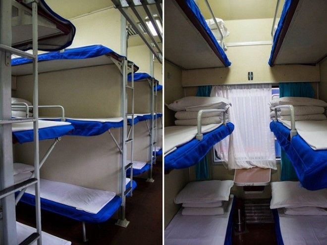 Эти необычные спальные полки внутри отделаны специальным ковролином, на второй ярус путешествующие смогут попасть по специальной лестнице, что обеспечивает комфортное и безопасное поднятие и спуск с верхних полок. Такие вагоны пользуются большим спросом у тех, кого не волнует столь близкое присутствие незнакомых людей.