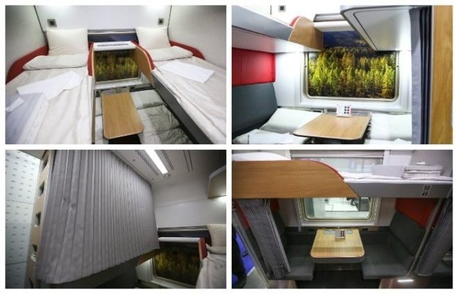 Хотя расположение полок и осталось прежним, но появились очень полезные дополнения: розетки, USB-разъемы, столик для стаканов между верхними полками, вендинговые автоматы и кулеры с горячей водой в тамбурах, а также шторки между полками.