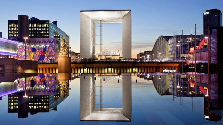 Район Парижа Дефанс, славится своей массивной конструкцией в виде куба. 110 метровая ввысь постройка расположена под небольшим углом к своей оси. Такая архитекторская задумка была осуществлена для придания объемности при взгляде с расстояния. Размеры арки велики настолько, что собор Парижской Богоматери полностью бы вместился. Зайдя внутрь, вы увидите подвешенное на тросах «облако». Подняться на смотровую площадку можно используя панорамный лифт. Для любителей компьютерных технологий открыты двери музея информатики.