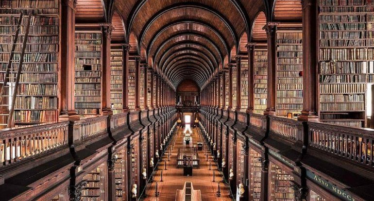 Библиотека «Длинная комната» названа по форме и дизайну. Она является частью Старой библиотеки в Тринити-колледже и хранит 200 000 самых старых книг из коллекции. Библиотека была построена в начале 18-го века, а её история так же богата, как и многие книги, которые она хранит. Самый известный экспонат — Келлская книга, великолепная иллюстрированная рукопись с кельтской и христианской иконографией. Крыша над книгами так же удивительна, с ее бочкообразным потолком и мраморными бюстами знаменитых писателей и философов. Прогулка по этой части Старой библиотеки заставит любого посетителя почувствовать себя маленьким.
