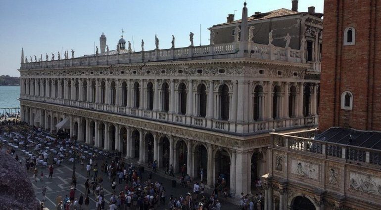 Идея публичной библиотеки в Венеции возникла, когда в 1468 году кардинал Бессарион подарил городу 750 книг. Хотя это послужило толчком к идее библиотеки, само здание не было построено до 1537 года. Коллекция книг значительно выросла благодаря закону, требующему, чтобы все печатные машины доставляли копии каждой изданной книги в библиотеку. На архитектуру библиотеки повлияла как греческая, так и итальянская культура, и элементы обоих можно увидеть в колоннах, кессонных потолках и скульптурах. Всего в библиотеке хранится более миллиона томов, и в настоящее время она является также известным в городе музеем, доступным для всех туристов.