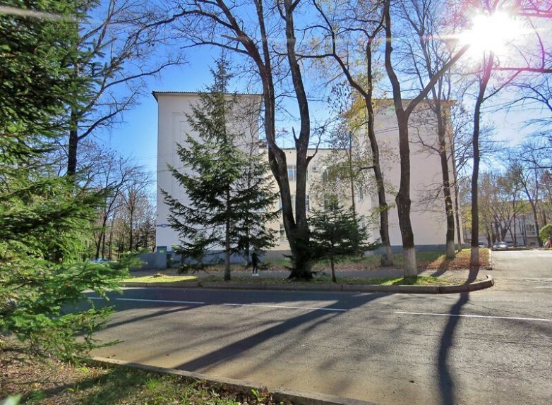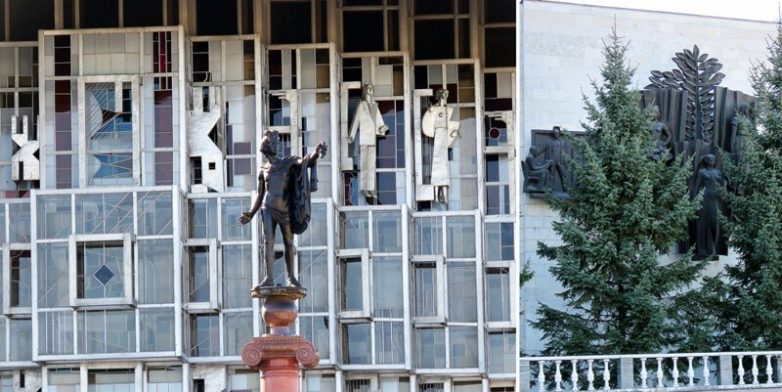 Фактически, мы вернулись к скверу Победы — за ДК он упирается в набережную громоздкой Филармонией (1982), пожалуй самым внушительным зданием Биробиджана.