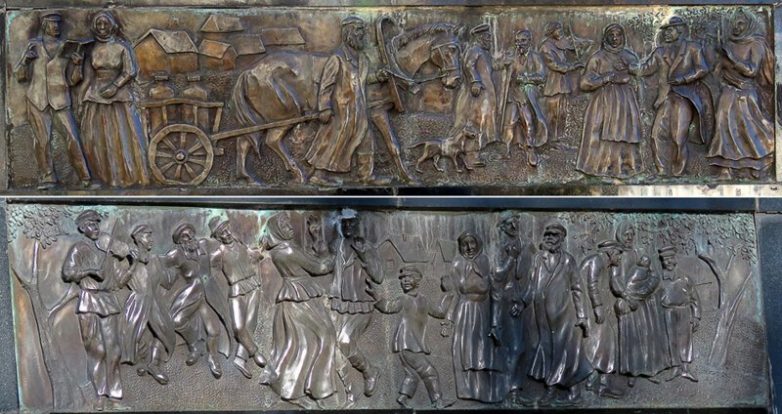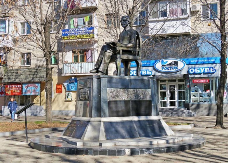 Самая интересная часть памятника (2004) — даже не скульптура писателя, а барельефы на постаменте: Фимы, Сони и Абрамы покидают родную Касриловку и обретают счастье в далёкой стороне.