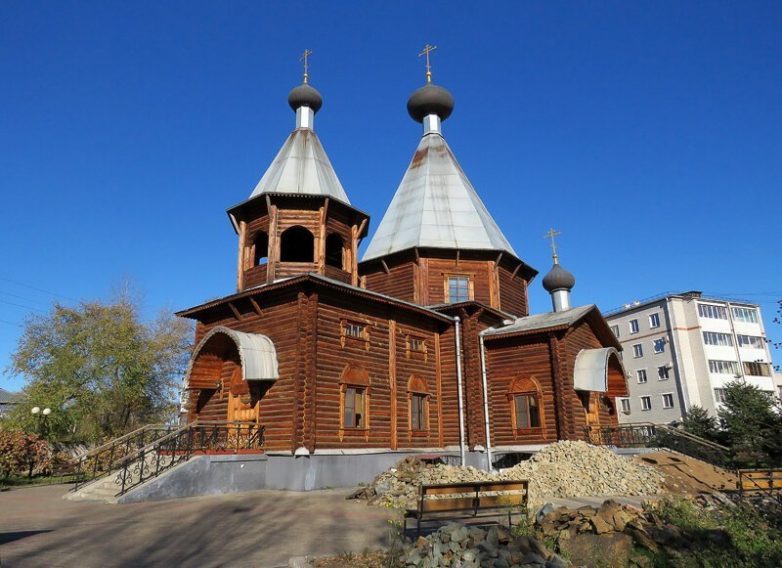 А за ней и деревянный Никольский храм (1998-99), первая культовая постройка Еврейской автономной области. Поначалу тут был ещё и приход РПЦ за Границей с батюшкой по имени Дмитрий Каплан.