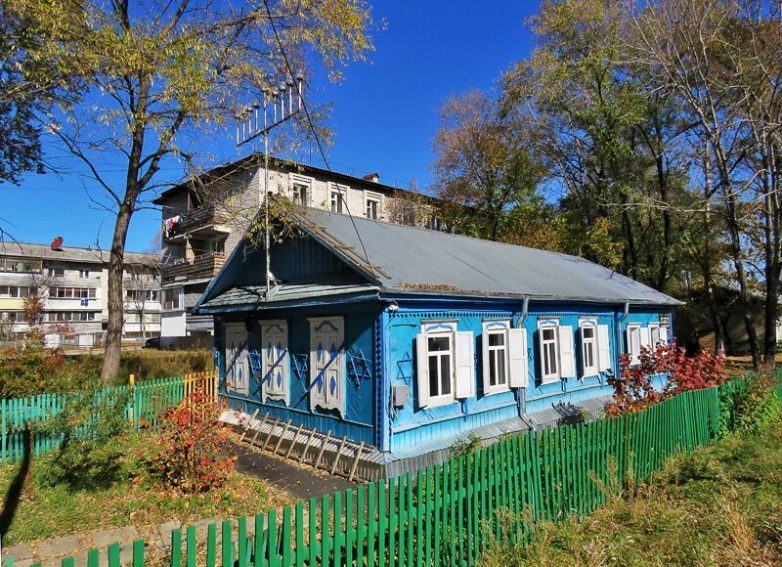 Первая синагога в Биробиджане легально открылась в 1947 году при содействии Амбиджана, и кочевала тогда по деревянным домам. Её первое здание сгорело в 1956 году, второе вконец обветшало к середине 1980-х, но стоит ещё третье — Старая синагога Бейт-Тшува («Дом покаяния») на улице Маяковского, открывшаяся в 1986 году. Как часто бывает в маленьких умирающих общностях, биробиджанские иудеи не могут договориться между собой: «Фрейд» принадлежит хасидам, а «Бейт-Тшува» — литвакам. Прежде, в постах из Западного пояса, я не раз и не два рассказывал о разнице этих двух иудейских течений. Хасидизм происходит с Украины, оплотом литваков были, как нетрудно догадаться, Литва с Беларусью, а наиболее влиятелен в России и вовсе Хабад — литвацкий хасидизм, возникший в Любавичах на границе России и Беларуси. Как главный раввин России в прессе обычно фигурирует Берл Лазар, прислаглашённый Хабадом из Италии. Но есть и другой главный российский раввин — Адольф Шаевич, представляющий как-раз таки литвацкие («умеренно-традиционные») общины. Он выходец с Амура, хоть родился и не в Биробиджане, а в Хабаровске, а стало быть в «Еврейке» позиции литваков чуть крепче, чем в остальной России. «Фрейд» и «Бейт-Менахем» — это детище Хабада, а историческая биробиджанская синагога — вот.