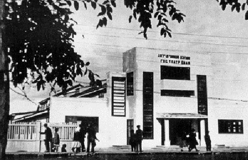 Построенный, как я понимаю, на месте ГосЕТа — Государственного еврейского театра имени Кагановича, действовавшего в 1934-49 годах. Что интересно, закрыли его вовсе не директивно, обвинив труппу в космополитизме, а просто перевели на хозрасчёт, что в Биробиджане практически равнялось ликвидации.