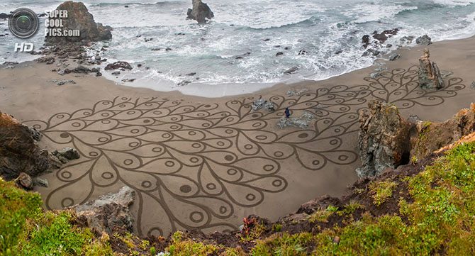 Американский художник Андрес Амадор создаёт свои картины на самых больших в мире полотнах — песчаных пляжах Сан-Франциско.
