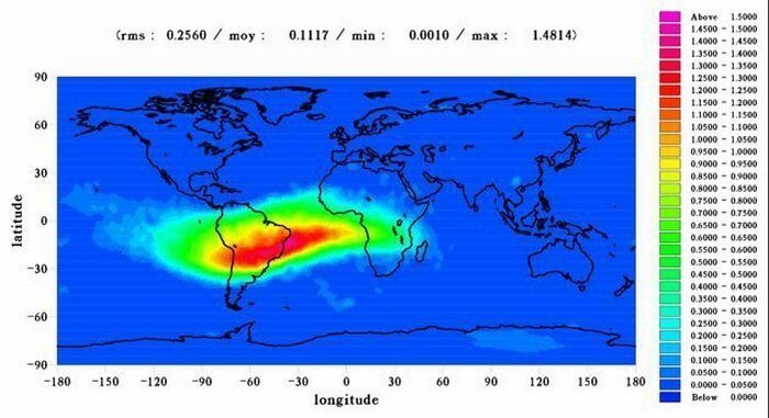 Если в космосе существует аналог Бермудского треугольника, то это наверняка Бразильская магнитная аномалия. Это область, где излучение, известное как внутренний радиационный пояс Ван Аллена, подходит ближе всего к поверхности Земли. Именно из-за этой области возникают многочисленные проблемы со спутниками и космическими аппаратами — от сбоя в программном обеспечении до полного выхода из строя. Телескоп Хаббл недавно фактически вышел из строя при прохождении через эту аномалию, а космонавты на МКС никогда не выходят в открытый космос при прохождении через территорию аномалии. Некоторые астронавты сообщали о «падающих звездах» над аномалией.