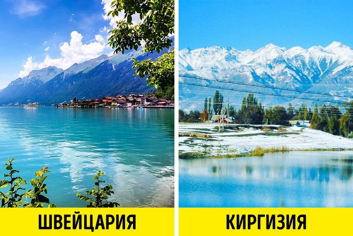 Швейцария — одна из самых дорогих стран в мире. За полноценный ужин на двоих в ресторане придется отдать € 90, бутылочку недорогого вина можно приобрести за € 10–12, а ночь в трехзвездочном отеле недалеко от Берна обойдется в € 135 на двоих.Швейцария знаменита горными озерами, но мало кто знает, что ландшафты Киргизии ничем не уступают швейцарским. Знаменитое горное озеро Иссык-Куль находится на высоте 1 609 м над уровнем моря. Его окружают многочисленные горы, ущелья и пляжи. Желающие провести на озере пару дней могут снять небольшой двухместный номер с завтраками за € 17 или заселиться в просторный коттедж за € 130–200. Поужинать можно в местном ресторанчике за € 13 на двоих.
