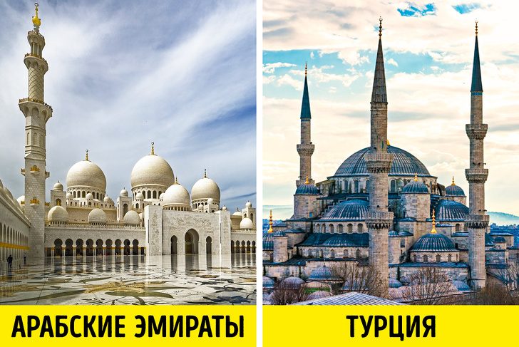 Мечеть шейха Зайда в Арабских Эмиратах — одна из самых роскошных в мире. Все в ней напоминает о богатстве: ковры привезены из Ирана, люстры — из Австрии, а полы отделаны итальянским мрамором.В Стамбуле тоже есть мечеть, которую видно из любой точки города. Ювелирная декоративная отделка, золотая роспись по стенам и традиционный фонтан для омовений — мечеть в Турции ничем не уступает достопримечательности в Абу-Даби. Однако посещать Стамбул выгоднее.