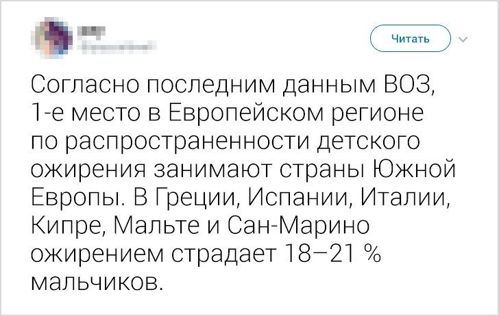 По статистике, каждый 5-й итальянец страдает от ожирения. А ситуация с детским ожирением на Апеннинах одна из худших в Европе.