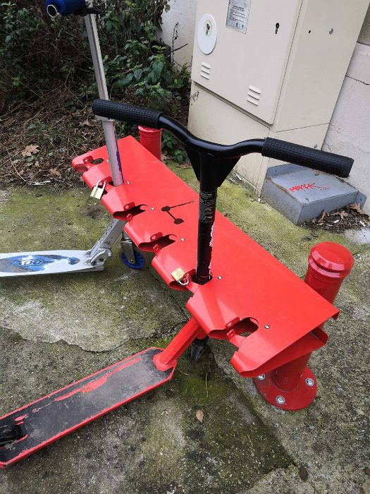 Пока в странах бывшего СНГ только начинают появляться парковки для велосипедов, в более развитых странах уже есть и парковки для самокатов. Чаще всего они располагаются возле магазинов и школ.