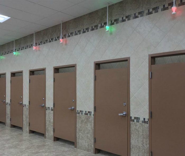 Общественный туалет, в котором нет необходимости дергать за ручки двери, чтобы выяснить, занята та или иная кабинка. А все потому, что над каждой установлен световой индикатор. Если кабинка занята, лампочка горит красным, если свободна — зеленым.