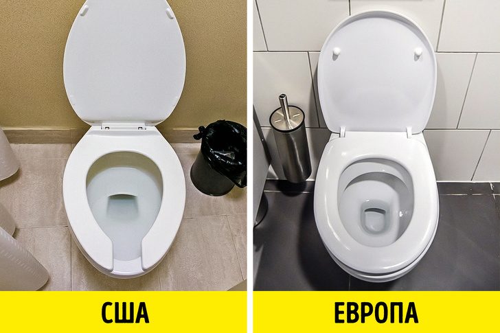 Сливная система в американских унитазах может напугать европейца. Из-за того, что чаша заполнена водой, создается впечатление, будто унитаз засорился. На самом деле это, конечно, не так. Высокий уровень воды уберегает стенки сантехники от загрязнений, и в большинстве домов в Америке даже ершиками никто не пользуется. А еще у некоторых унитазов в США вообще нет бачков.
