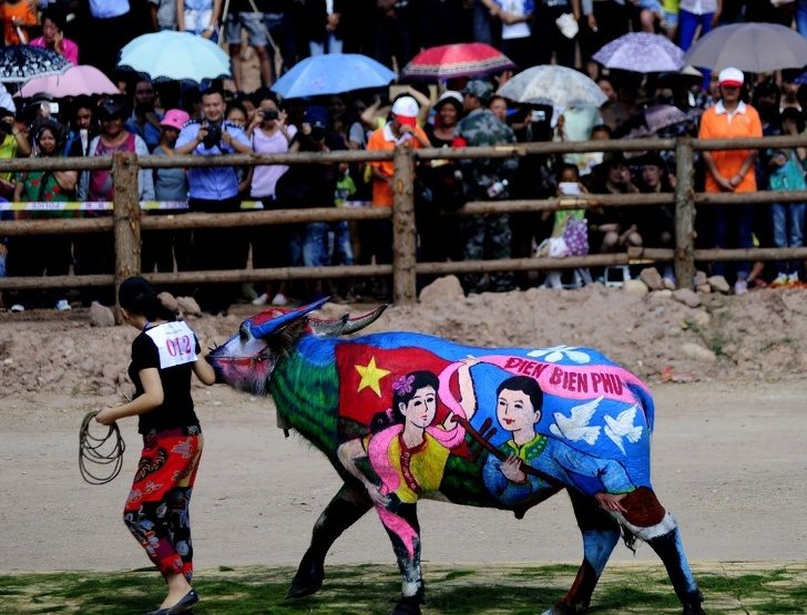 Старая китайская легенда гласит: однажды тигр напал на буйвола, и, пока они боролись, буйвол покрылся кровью и грязью и начал выглядеть так устрашающе, что испуганный тигр убежал. С давних времен местные жители красят животных в разные цвета, и эта традиция превратилась в популярный ежегодный фестиваль в провинции Юньнань. В конкурсе на лучшего разрисованного буйвола участвуют десятки команд из Китая, Вьетнама, Лаоса и других стран, а призовой фонд составляет $ 15 тыс.