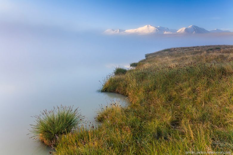 Через пару часов от тумана ни осталось ни следа. Зато при ярком утреннем солнце стало хорошо заметно, что озеро тоже молочного цвета. Целое озеро молока! Пей — не хочу )