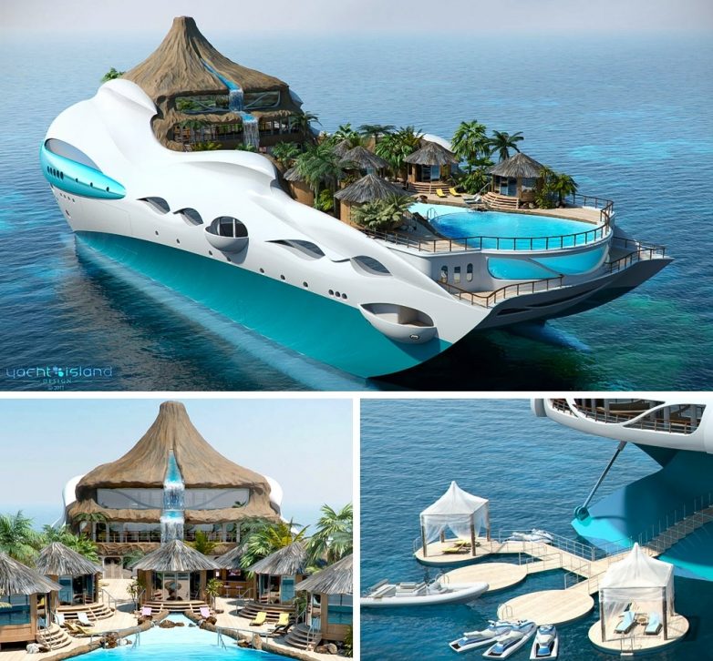 На главной фотографии этой статьи можно полюбоваться совершенно невероятной яхтой, имеющей название «Тропический остров». Конечно же, пока она является всего лишь проектом, однако вряд ли какой-нибудь миллиардер упустит возможность стать владельцем одной из самых уникальных яхт будущего.