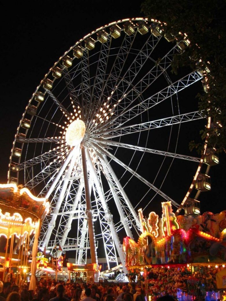 Колесо обозрения (Париж) — одно из самых больших мобильных колес обозрения (60 метров). Было смонтировано в Париже в преддверии празднования миллениума. После нахождения в Бирмингеме и Манчестере в 2005 году было смонтировано в Амстердаме (на фото), в 2007-м побывало в Бангкоке, затем в Антверпене в 2008-м и в Римини в 2013-м.