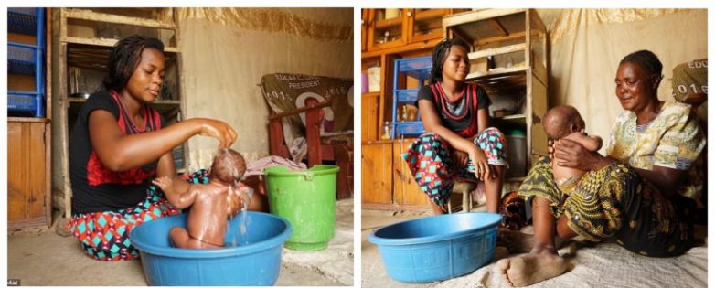 Замбия: 18-летняя Линети купает месячную дочку Марию. Настой сделан из корней дерева, для того чтобы защитить малышку от злых духов и сохранить ее здоровье.