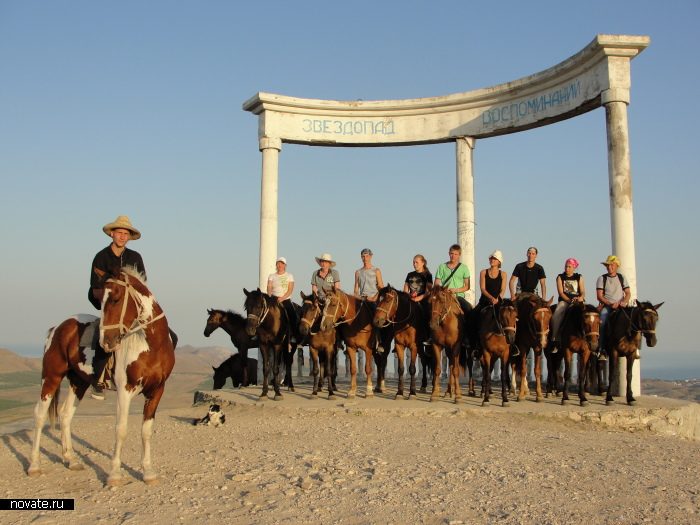 Евгения продолжает: «Но закончилось всё тем, что группе из дюжины человек сказал инструктор: «Так, всё, по коням!» Мы залезли на коней, нам выдали ковбойские шляпы, а затем хозяин лошадей по имени Бекир просто заорал «Поехали!», ударил всех лошадей по очереди по крупу, и лошади привычно поскакали, причем, сразу аллюром, достаточно быстро. Было очень страшно! Просто ужасно! Потому что все лошади сгрудились в одну кучу, неся на себе нас, всадников. Кроме того, там были еще молодые лошади, которые скакали без всадников, и в какой-то момент две молодые лошади без всадников зажали с двух сторон, я начала сползать на один бок, начала кричать. Но тут рядом оказался Бекир, он меня смог усадить ровно на лошадь, и я без вреда для здоровья достигла нашей точки назначения в горах».