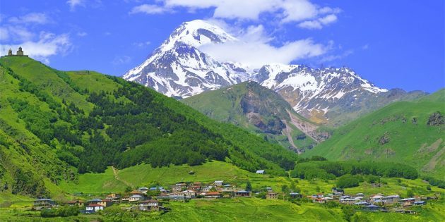 Степанцминда на фоне Казбека