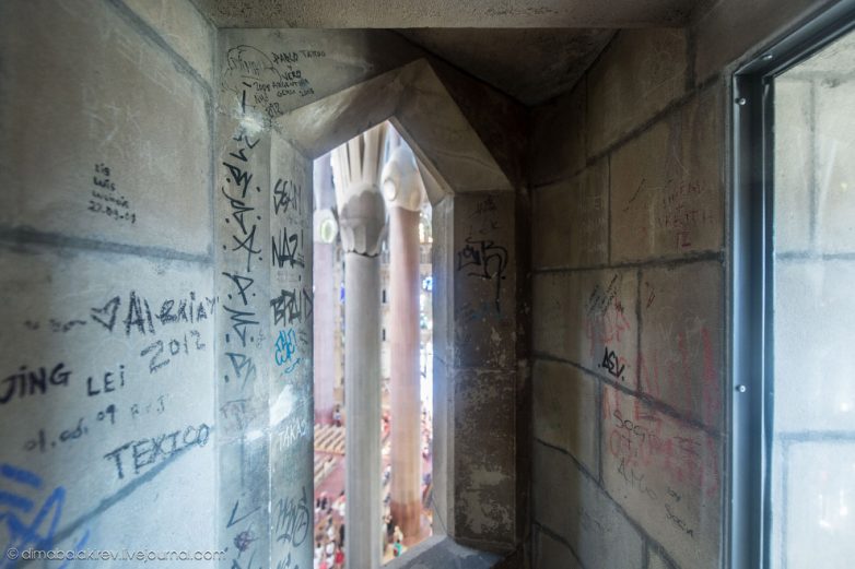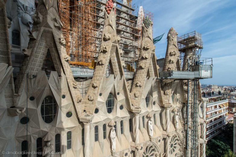 Если посмотреть вниз, то можно увидеть стекающиеся к храму толпы туристов. Храм Святого Семейства — визитная карточка Каталонии. Более знаменитая, чем футбольная команда «Барселона» со всеми вместе взятыми звездами Месси, Иньестой и Неймаром.