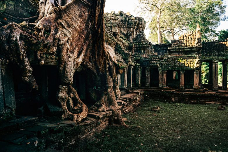 Заброшенные места всегда выглядят загадочно и манят к себе. Эти таинственные кадры сняты в заброшенных храмах Камбоджи, находящихся в Ангкоре. Особняком здесь находится храм Та Пром (Ta Prohm), где огромные деревья, напоминающие вековые секвойи или дубы, сливаются со стенами и башнями и обнимают камни гигантскими корнями.