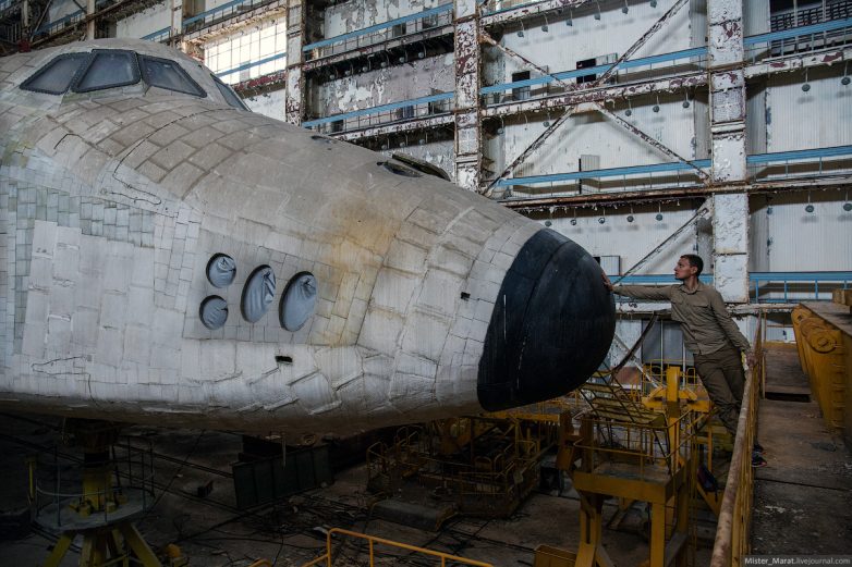 «Буран» представлял собой орбитальный корабль-ракетоплан многоразовой транспортной космической системы. Это один из двух реализованных в мире кораблей для многоразовых пилотируемых полетов в космос, не считая неоконченного проекта «Буря», готовность которого на момент остановки работ была равна 95%. Единственный полет «Буран» совершил 15 ноября 1988 в автоматическом режиме, удачно приземлившись обратно. От осознания этого волосы встают дыбом – это была передовая технология в тот момент. Экземпляр, летавший в космос пострадал после обрушения крыши МИК-112 в 2002 году. Разрушенный корпус находится совсем рядом с МЗК.