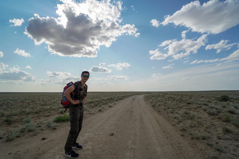 Выспавшись в бюджетной гостинице (которая оказалась бывшим борделем с крайне скверной репутацией), днем мы не без труда (казахские водилы входят в мой личный топ Остапов Бендеров) взяли такси в сторону космодрома, и не доезжая до него, выскочили заранее у небольшой проселочной дороги, которая вела в сердце космодрома. Отсюда начался наш 36-километровый путь по выжженым землям Казахстана.