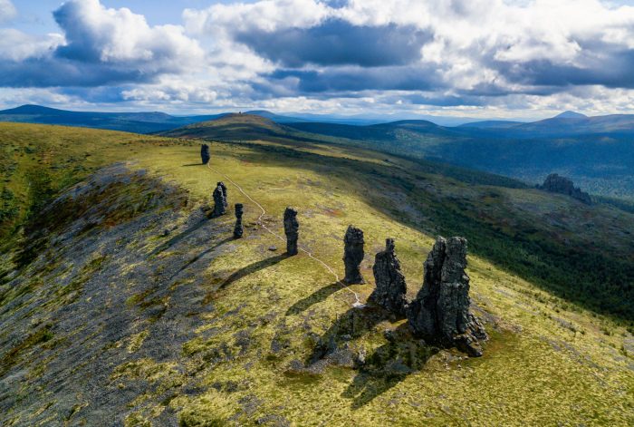 Разумеется, местные предания связывают с этими гигантами многочисленные легенды. Народ манси в прошлые века обожествлял их, считая застывшими великанами. Шаманы поклонялись удивительным скалам, но подниматься на плато и тревожить сон каменных гигантов считалось величайшим грехом. Даже сегодня поток туристов еще не добрался до этих мест, так как достичь плато не так легко — оно находится в труднодоступной местности и на это способны только физически подготовленные люди. Однако с каждым годом смельчаков находится все больше.