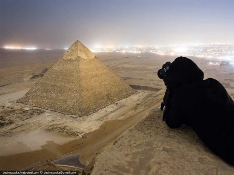 На вершине одного из семи чудес света — пирамиды в Гизе.
