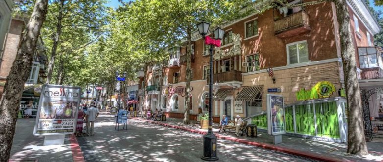 Нечто, напоминающее пешеходный бульвар — совсем короткий переулок Димитрова между необорудованной набережной и площадью Ленина. Да и занимают увеселительные заведения только правую часть переулка.