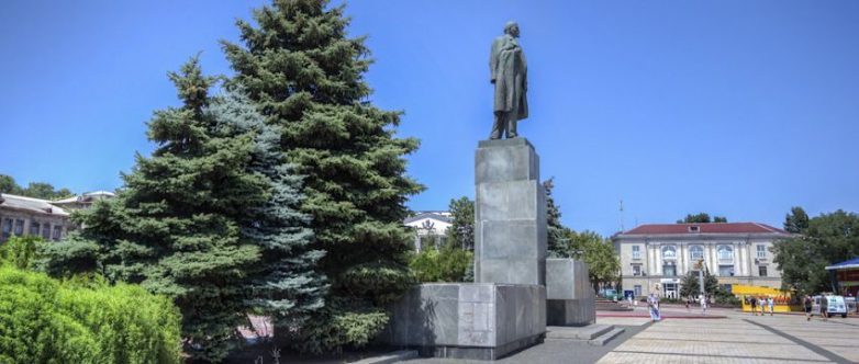 За храмом лежит главная площадь города, по традиции названная в честь Ленина.