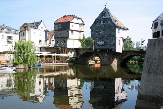 Дома на мосту через реку Наэ, Бад-Кройцнах, Германия