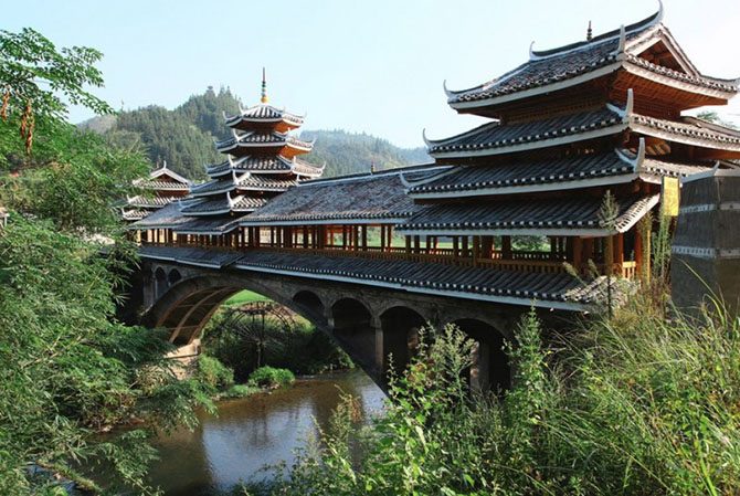 Мост с множеством названий (мост Юнцзи, Дунский мост, Чэнъянский мост) построен в 1912 году. Сооружение возведено без применения гвоздей: на пяти каменных опорах уложены бревенчатые настилы, на которых, в свою очередь, стоят крытые павильоны. Мост соединяет две густонаселенные деревушки и служит зоной торговли и отдыха.