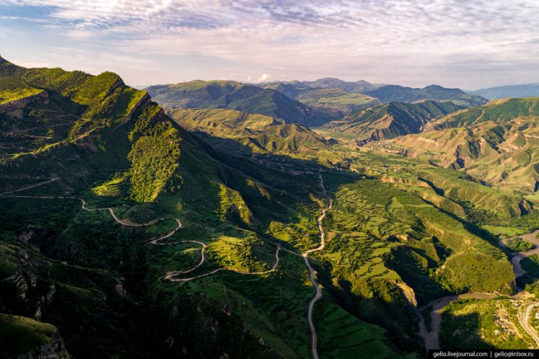 К центральной площади Гуниба ведёт серпантин дороги.