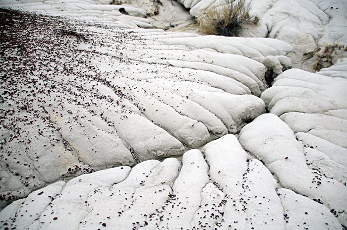 В пустоши можно увидеть сочетание сразу нескольких контрастных оттенков пород. Белые краски — это глина, черные — это вулканический пепел, коричневые и красноватые вкрапления — это щепки доисторических окаменелых деревьев. Иногда здесь можно встретить целые ветки растений, которые здесь росли во времена доисторических ящеров, рыб и птиц.