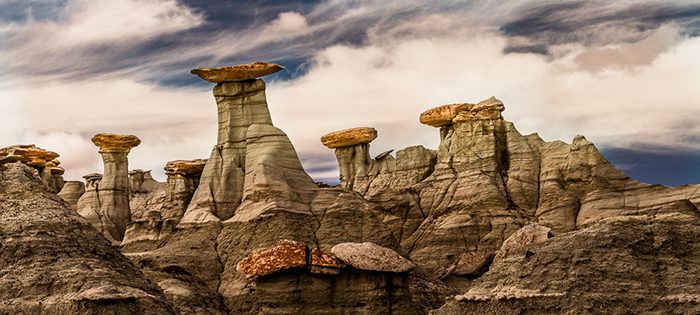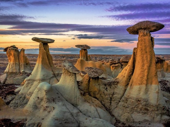 Находится этот заколдованный каменный лес на северо-западе штата Нью-Мексико, туда можно добраться на автомобиле, что правда, лучше это делать в хорошую погоду. Вся местность покрыта меловыми и глинистыми почвами, из-за чего в дождь путник рискует если не подскользнуться на спусках одной из скал, так уж точно таскать на каждой ноге по паре килограмм прилипшей грязи.