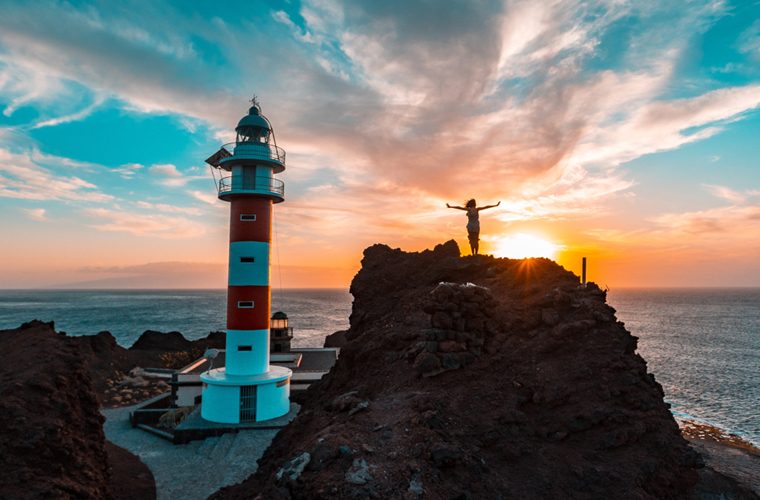 Искателям приключений рекомендуется отправиться в самую западную точку острова, местечко Пунта-де-Тена. Сюда можно добраться из последнего на северо-западе населенного пункта Буэнависта-дель-Норте на автобусе или арендованном электробайке. Дорога на всем протяжении узкая, но идеальная для велопрогулки. Она подходит к самому обрыву, немного петляет, но за каждым поворотом появляется волшебный вид на утесы и отколовшиеся камни, а внизу бушует океан. Путь заканчивается у маяка, откуда в ясную погоду видно соседние острова. Рядом есть дикий пляж, состоящий из лагун и пещерок, а напротив крутой и изрезанный скалистый берег под названием Acantilados de Los Gigantes. В будние дни здесь почти не бывает людей, а те, кто решается приехать, навсегда уносят в памяти яркие краски заката. Но если хочется незабываемого спектакля, необходимо подняться на высоту национального парка Тейде, где вы увидите уникальную природу и вулканические ландшафты, так полюбившиеся мировому кинематографу. Здесь закатные лучи, отражаясь от разноцветных пород, переливаются всевозможными цветами, от камней появляются тени причудливых форм. А если заранее взобраться на одну из смотровых площадок, то в ярком свете заходящего солнца покажутся и соседние острова, и пенящееся море из облаков.