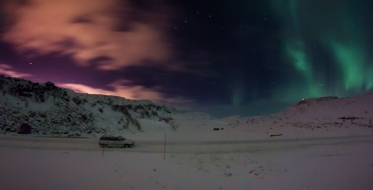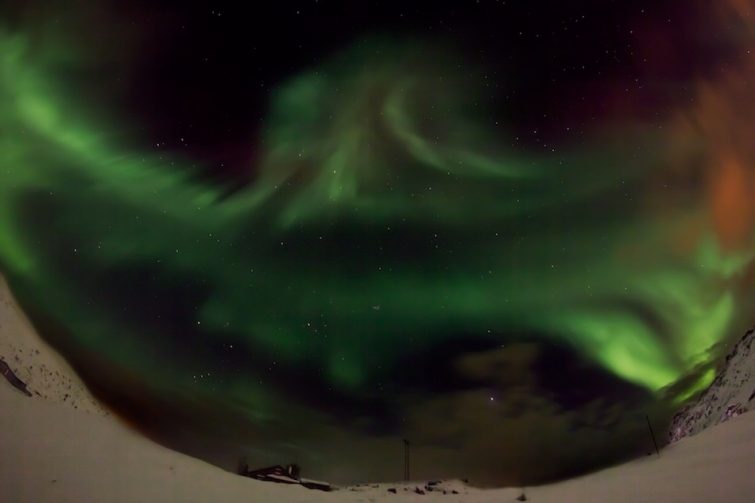 Северное сияние в небе над коммуной Хаммерфест, Финнмарк, Норвегия