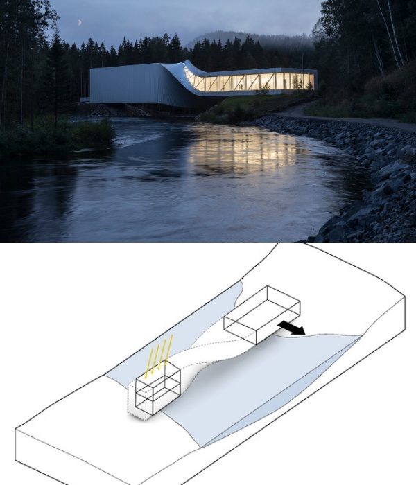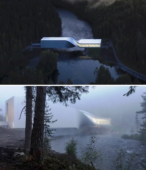 На территории парка скульптур Kistefos, расположенного в Осло, датская архитектурная студия BIG создала необычный витой мост, который соединяет разноуровневые берега реки Рандсельва. Впечатляющая конструкция является не только переправой, но и настоящим музеем, где планируют проводить различные выставки.