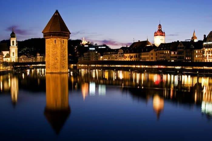 От центра города на другую сторону Люцернского озера ведет один из самых старинных и живописных мостов Европы – Часовенный мост с уникальной деревянной крышей.