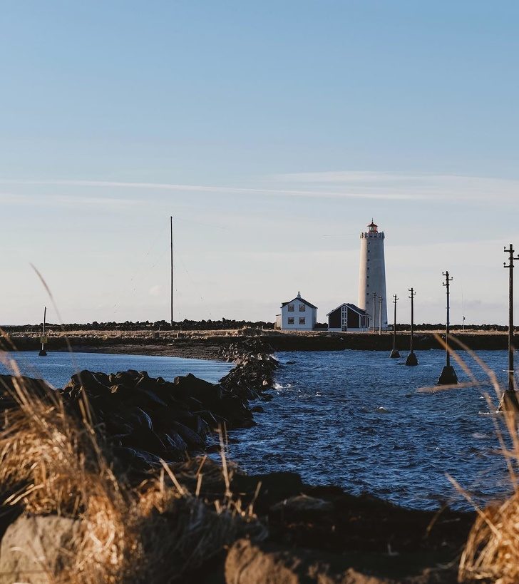 Это Гротта, самый доступный маяк в Рейкьявике (а вернее в Селтьярнарнесе, который почему-то не часть Рейкьявика, а отдельный пригород). Именно сюда приезжают толпы туристов насладиться северным сиянием (когда не очень-то хотят выезжать из города).