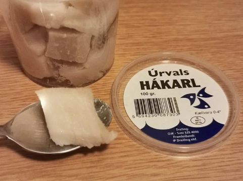 Хаукарль — исландское национальное блюдо из мяса гренландской акулы (оно ядовитое), о котором говорят «на вкус как смерть». Все потому, что у этой рыбы нет почек. Акулу закапывают в землю на 6–12 недель, после чего 2 месяца выдерживают на свежем воздухе.