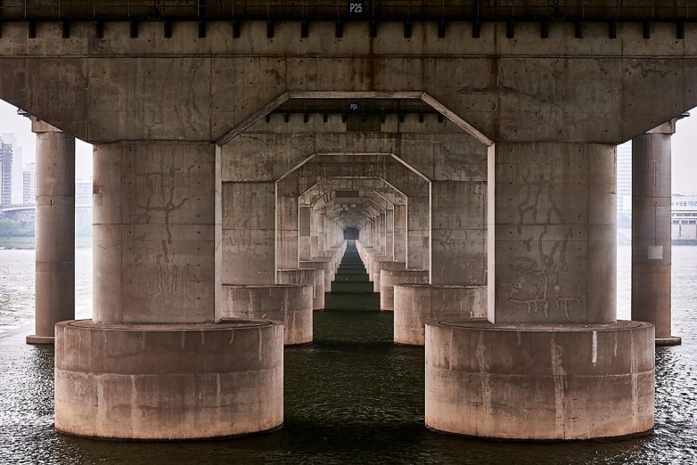 Мануэль Альварес Диестро (Manuel Alvarez Diestro) начал работать над серией «Сеульские мосты» вскоре после переезда из Англии в Южную Корею. Катаясь на велосипеде вдоль реки, он остановился отдохнуть под мостом Мапо в Йойдо и тут же заворожился тем, как бетонные колонны и балки выглядели снизу. «Меня очаровала монументальность и массивность сооружений, а также перспектива, которую они образуют, – объясняет фотограф. – Грандиозность несущих конструкций в реке и пространства, которые они создают, порождают вдохновившую меня таинственность».