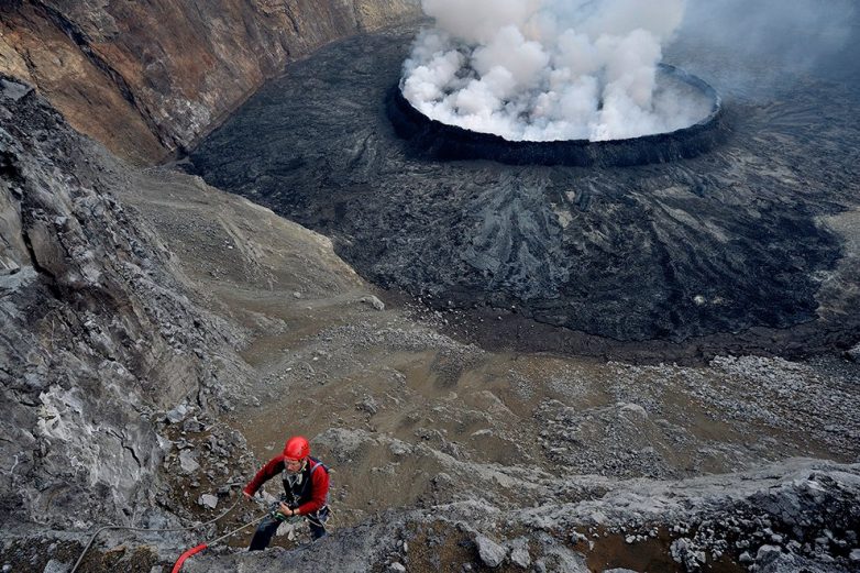 Это вид с края вулкана, 3 470 метров над уровнем моря. На глубине около 400 метров находится озеро лавы — одно из чудес африканского континента. (Фото Olivier Grunewal):
